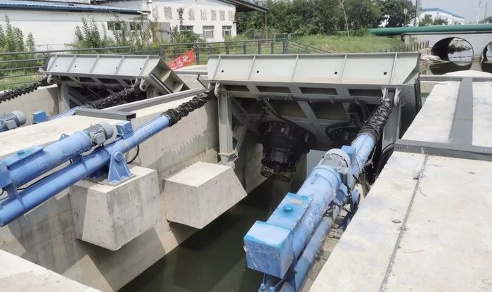 液壓上翻啟閉機(jī),提升速度快、結(jié)構(gòu)穩(wěn)定,地面以上部分少,景觀效果好。
