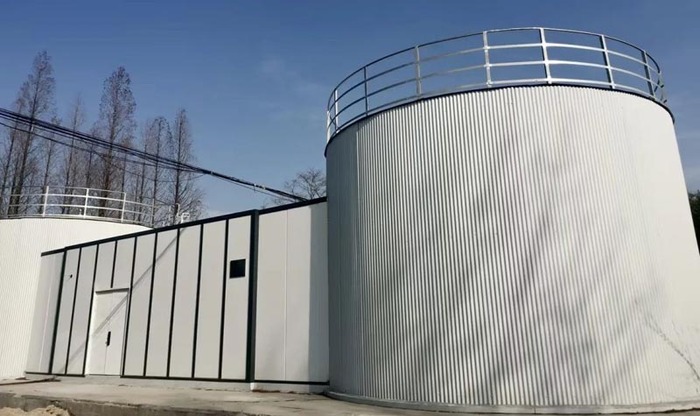 期間,面對(duì)土建基礎(chǔ)施工、圓柱形水箱現(xiàn)場(chǎng)焊接、智慧泵房采購(gòu)及現(xiàn)場(chǎng)組裝、智慧控制系統(tǒng)與水司監(jiān)控平臺(tái)對(duì)接等多重挑戰(zhàn),凱泉迅速成立了項(xiàng)目現(xiàn)場(chǎng)工程部,針對(duì)施工難點(diǎn)和客戶需求不斷優(yōu)化方案。最終,泵站采用一體化戶外泵房型式,占地約20*10米,采用熱鍍鋅鋼板拼裝結(jié)構(gòu),有效節(jié)省了占地面積。同時(shí),使用2個(gè)直徑8米、高度6米的圓柱形水箱,單個(gè)有效容積達(dá)250立方米,相比傳統(tǒng)矩形水箱減少了50%的占地面積。