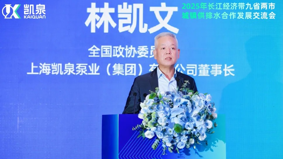 全國政協(xié)委員、上海凱泉泵業(yè)集團(tuán)有限公司董事長兼總裁林凱文作為致辭嘉賓,結(jié)合凱泉在水務(wù)裝備領(lǐng)域的深厚積淀,分享了凱泉在推動供排水行業(yè)技術(shù)創(chuàng)新、助力長江經(jīng)濟(jì)帶水資源保護(hù)的思考與行動。他表示,凱泉將繼續(xù)把技術(shù)研發(fā)視為核心驅(qū)動力,秉持 “泵業(yè)報(bào)國” 情懷,以優(yōu)質(zhì)產(chǎn)品和服務(wù)賦能行業(yè),為守護(hù)長江碧水貢獻(xiàn)力量。