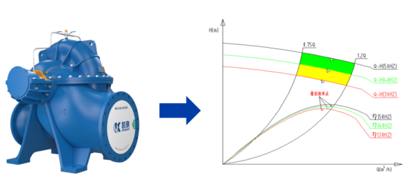 在前期溝通環(huán)節(jié),凱泉技術(shù)團(tuán)隊(duì)在業(yè)主與設(shè)計(jì)院處了解到:該項(xiàng)目泵未來5-6年間,需以單泵運(yùn)行于18-23米揚(yáng)程區(qū)間,并需兼顧遠(yuǎn)期需求。難點(diǎn)在于:一臺水泵需覆蓋18個(gè)參數(shù)點(diǎn),揚(yáng)程跨度大,且對額定點(diǎn)效率、加權(quán)平均效率、汽蝕性能及噪音控制等均提出了極高標(biāo)準(zhǔn)。